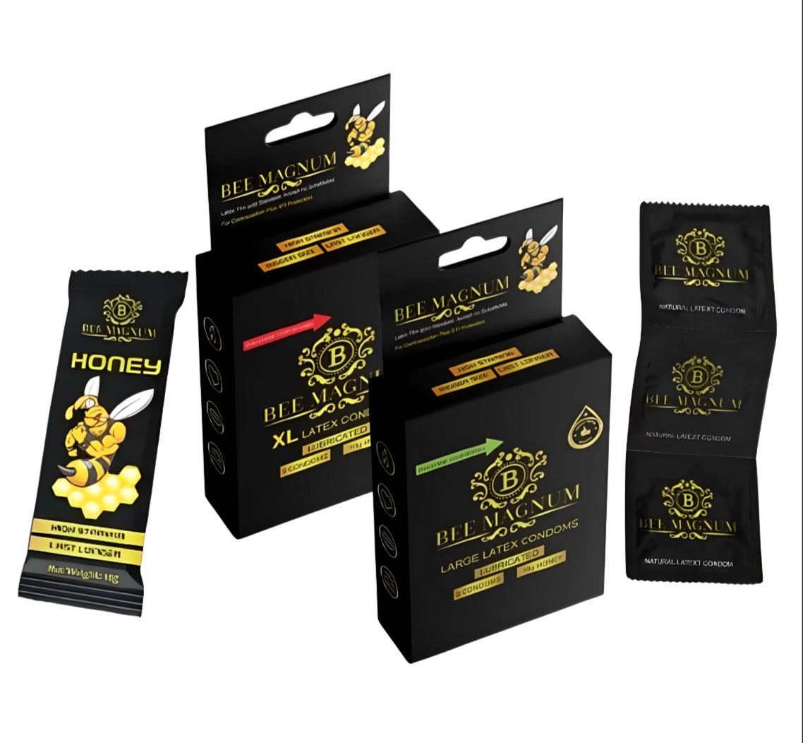 Bee Magnum stands out for its combination of comfort, premium quality, and unique honey infusion. Designed in a larger size, it ensures a natural fit and enhances confidence, while the smooth lubrication improves comfort and sensation. The honey essence adds a subtle sweetness, creating a more intimate and enjoyable experience. Every product undergoes strict quality testing to guarantee safety, durability, and reliability. Whether it’s for daily use or special moments, Bee Magnum delivers a perfect balance of protection, pleasure, and sophistication, making it a trusted choice for discerning users.